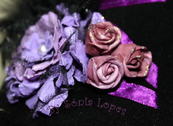 Não sou nada adepta do Halloween mas este ano decidiram reunir as crianças do prédio e arredores para uma divertida e animada noite ... então ... decidi alterar por completo um simples chapéu preto com uma bonita fita de organza, penas e flores. Para acompanhar, fiz também um acessório a condizer para a Salomé ir colocando as guloseimas que ia recebendo...ficou repleto de doçuras como se vê nas últimas fotografias!